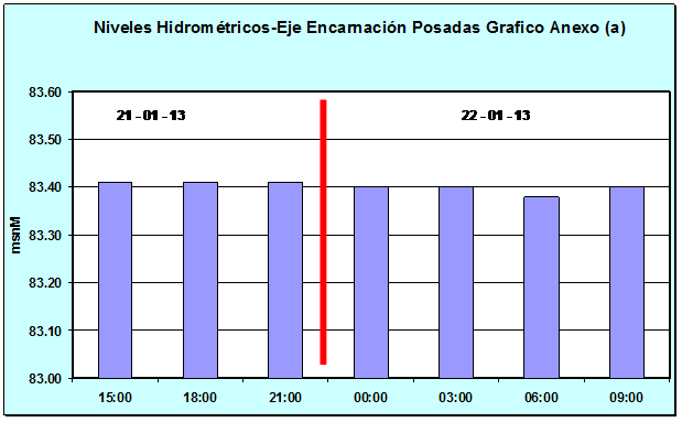 Cota Día 21-01-13 06:00 hs 83.39 msnM Cota Día 22-01-13 06:00 hs 83.38 msnM