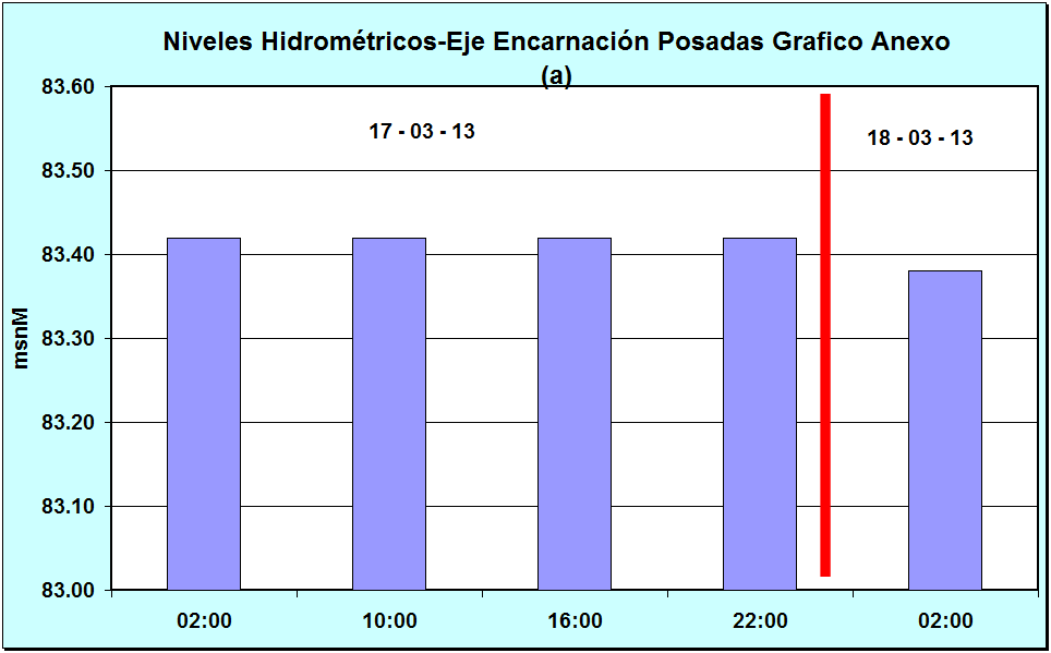 Cota Día 17-03-13 02:00 hs 83.42 msnM Cota Día 18-03-13 02:00 hs 83.38 msnM
