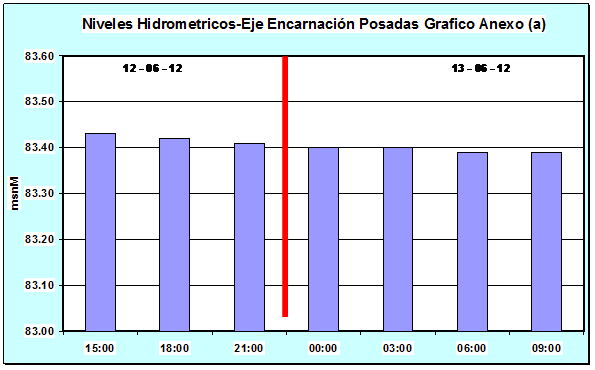 Cota Día 12-06-12 03:00hs 83.44 msnM Cota Día 13-06-12 03:00hs 83.40 msnM
