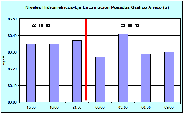Cota Día 22 -11-12 03:00 hs 83.33 msnM Cota Día 23 -10-12 03:00 hs 83.41 msnM