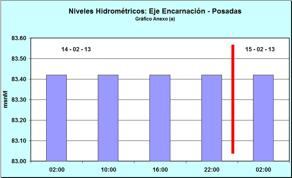 Cota Día 14-02-13 02:00 hs 83.42 msnM Cota Día 15-02-13 02:00 hs 83.42 msnM