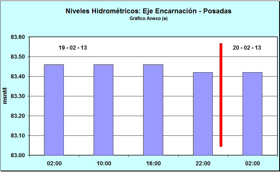 Cota Día 19-02-13 02:00 hs 83.46 msnM Cota Día 20-02-13 02:00 hs 83.42 msnM