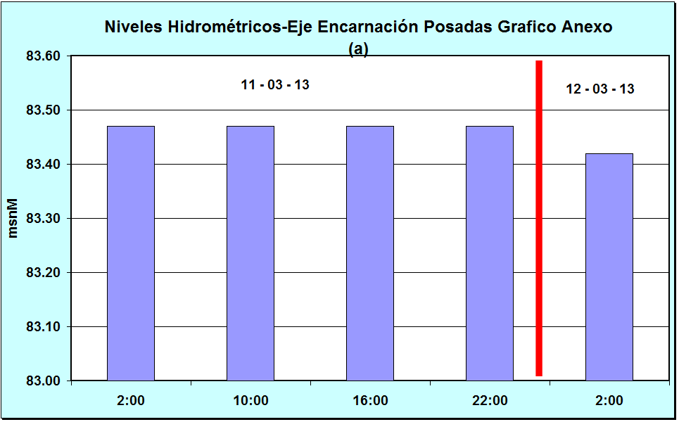 Cota Día 11-03-13 02:00 hs 83.47 msnM Cota Día 12-03-13 02:00 hs 83.42 msnM