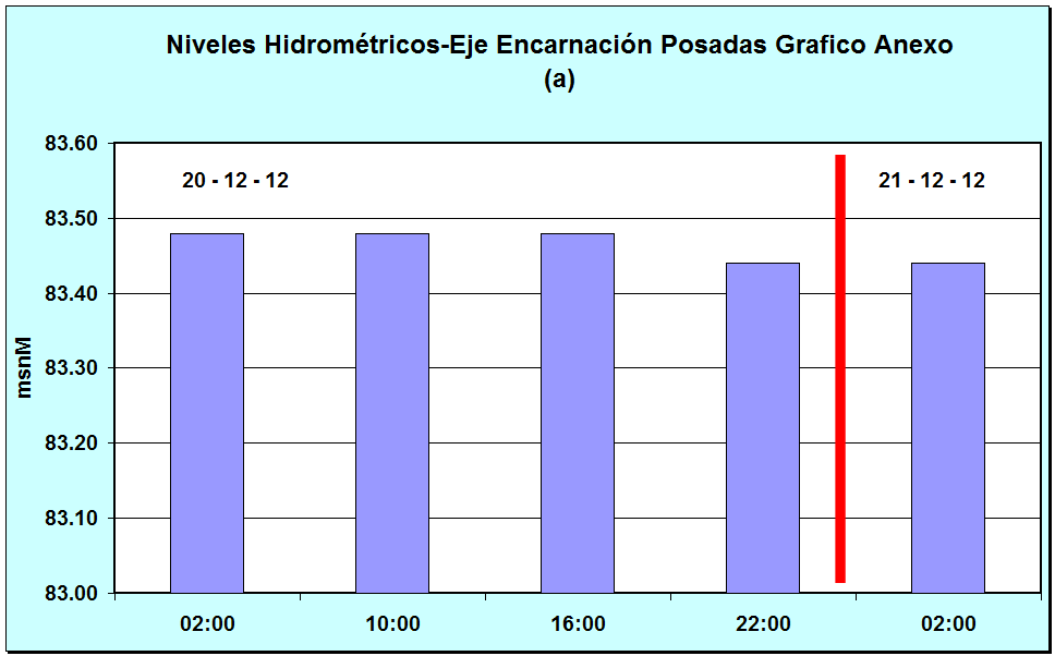 Cota Día 20-12-12 02:00 hs 83.48 msnM Cota Día 21-12-12 02:00 hs 83.44 msnM