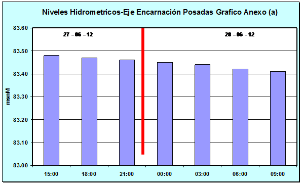 Cota Día 27-06-12 03:00hs 83.46 msnM Cota Día 28-06-12 03:00hs 83.44 msnM