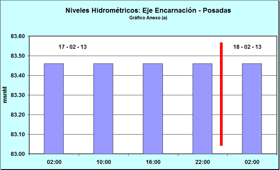 Cota Día 17-02-13 02:00 hs 83.46 msnM Cota Día 18-02-13 02:00 hs 83.46 msnM