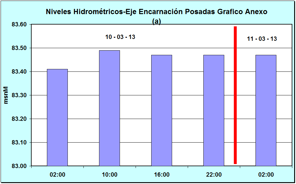 Cota Día 10-03-13 02:00 hs 83.41 msnM Cota Día 11-03-13 02:00 hs 83.47 msnM