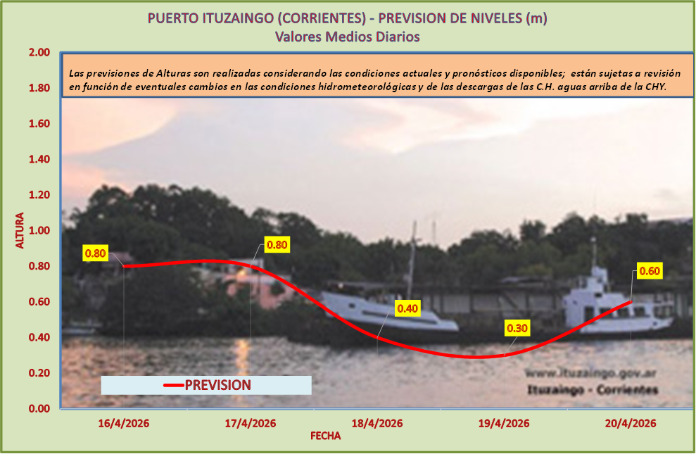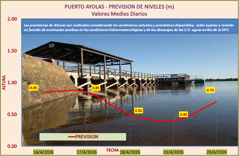 Las previsiones de Alturas son realizadas considerando las condiciones actuales y pronósticos disponibles y están sujetas a revisión en función de eventuales cambios en las condiciones hidrometeorológicas y de las descargas de las C.H. aguas arriba de la CHY.