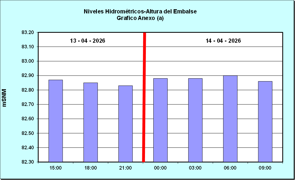 Nivel de Ayer (06:00 hs) = 82.97 mSNM Nivel de Hoy (06:00 hs) = 82.88 mSNM