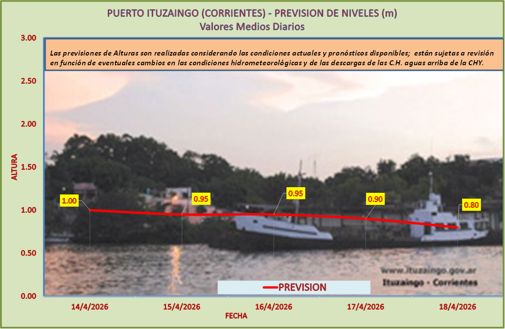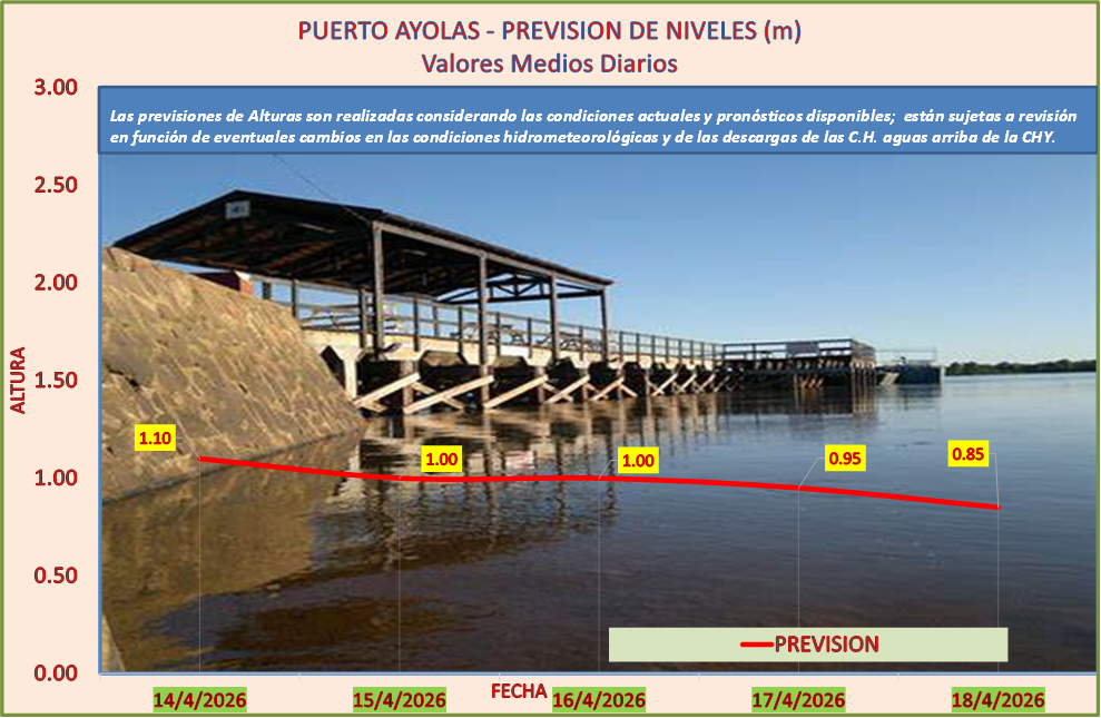 Las previsiones de Alturas son realizadas considerando las condiciones actuales y pronósticos disponibles y están sujetas a revisión en función de eventuales cambios en las condiciones hidrometeorológicas y de las descargas de las C.H. aguas arriba de la CHY.