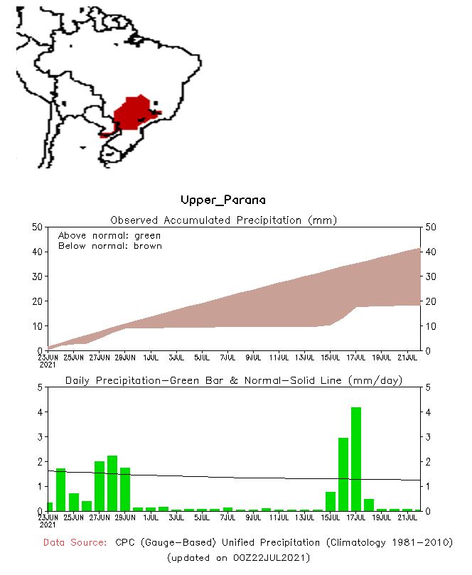 Los embalses de acumulación del Brasil que se ubican en la cuenca alta del río Paraná, aguas arriba de la Central Hidroeléctrica de Yacyretá, se encuentran con volúmenes útiles y niveles muy por debajo de lo normal debido a las escasas precipitaciones registradas.