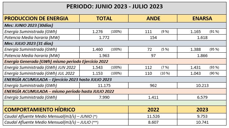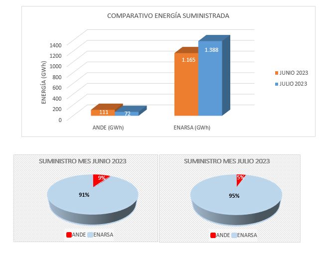 La energía total suministrada de enero a julio de 2023 es de 11.175 GWh, superior a la acumulada en el mismo periodo del año 2022, que fue de 7.990 GWh.