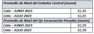 En cuanto al comportamiento hídrico, el caudal afluente medio mensual fue de 10.741 m³/s, superior al del mes de junio que fue de 9.753 m³/s,