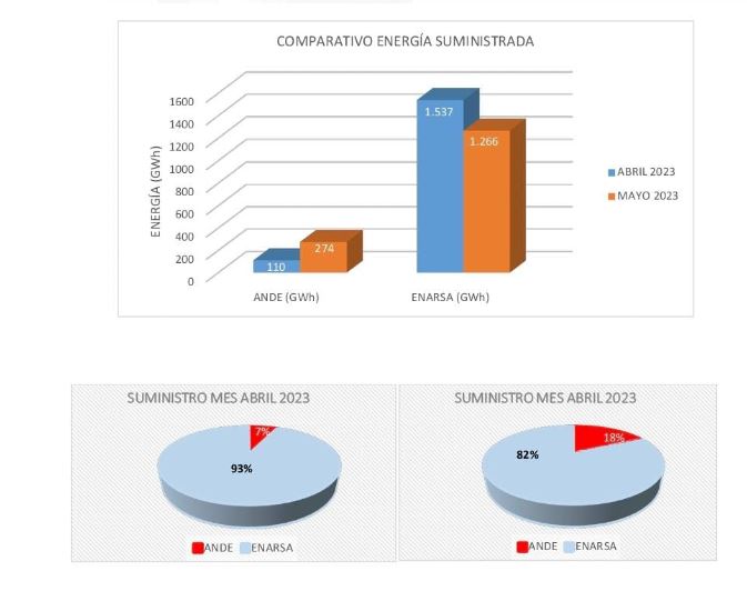 Del total, correspondió a la Administración Nacional de Electricidad (ANDE) 274.234,2 Mwh y a Energía Argentina Sociedad Anónima (ENARSA), 1.265.647,3 MWh.