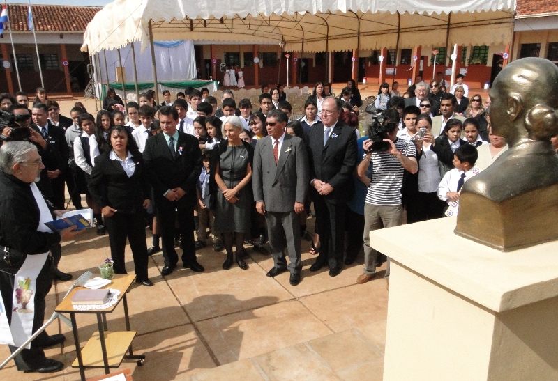 Con motivo del festejo patrio del 25 de mayo, el Consulado Argentino en Encarnación descubrió en la fecha un monumento con el busto Eva Duarte de Perón en el patio interno de la Escuela “República Argentina” de esta ciudad, con el apoyo de la Entidad Binacional Yacyretá (EBY).