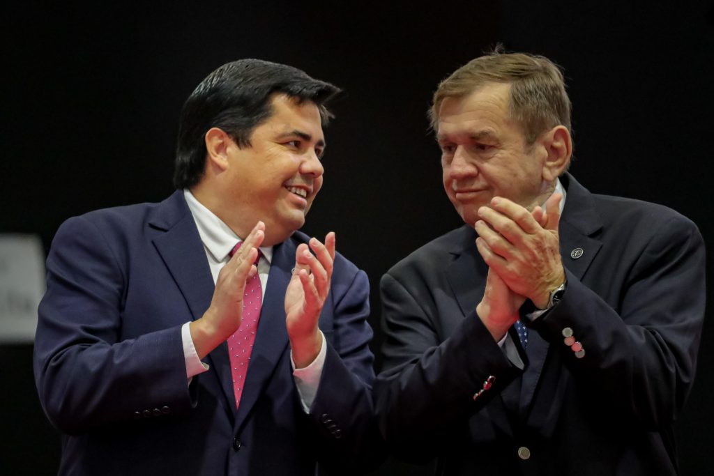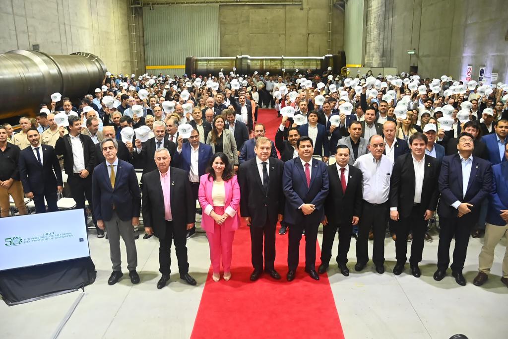 Los directores ejecutivos de la Entidad Binacional Yacyretá por ambas márgenes, Lic. Luis Benítez Cuevas e Ing. Fernando De Vido respectivamente, encabezaron este lunes los actos conmemorativos por el quincuagésimo aniversario de la firma del Tratado de Yacyretá destacando los logros obtenidos en este medio siglo de trabajo compartido entre Paraguay y Argentina, así como la necesidad de seguir encarando obras para garantizar energía limpia y renovable a las futuras generaciones.