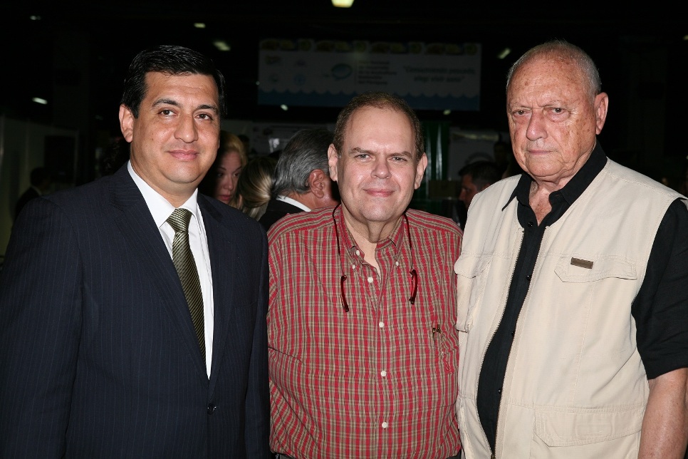Foto 2: El ministro de Agricultura y Ganadería, Enzo Cardozo; el director de la EBY, Lic. Enrique Cáceres Rojas; y el director del Diario Abc Color, Aldo Zucolillo.