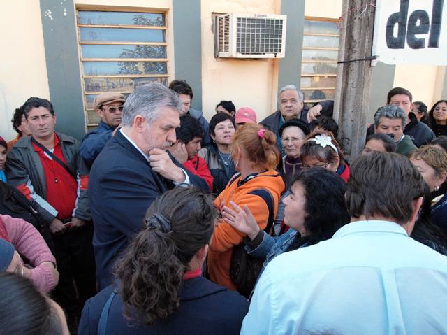 Foto: Rodríguez conversa con manifestantes que le aguardaban en su primera llegada como director a Encarnación.