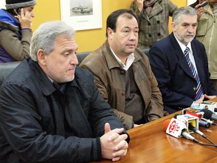 Foto: Conferencia de prensa del director de la EBY (derecha), el gobernador y el intendente de Encarnación.
