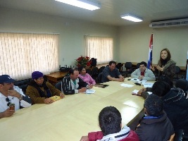El encuentro se realizó en la sala de reuniones de la Dirección de la EBY en la sede Ayolas, con la presencia del delegado del Director de Yacyretá, Alén Espínola, la coordinadora Social, Zunilda Llano, entre otros funcionarios de la Binacional.