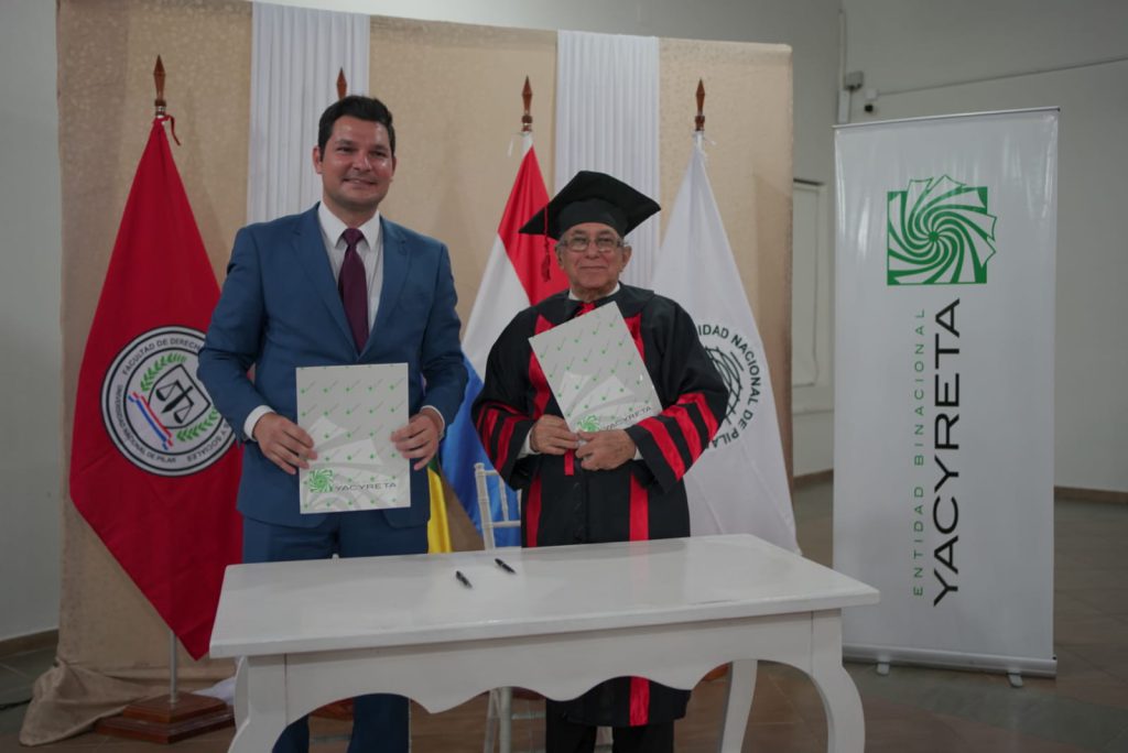 El convenio fue rubricado por el encargado del área de Coordinación Social en Ñeembucú, Abog. Emmanuel Cuevas, en representación del director de la EBY, Lic. Luis Benítez, y el decano de la mencionada casa de estudios, Prof. Dr. Víctor Hermógenes Encina Silva.