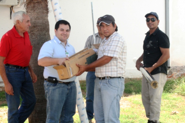 La entrega del aporte se realizó en la Planta de Agua de la Unidad Técnica de la Entidad Binacional Yacyretá (EBY), con la presencia de Alen Espínola, por parte de Yacyretá, y del sr. Merardo Ramírez, de parte de la Junta de Saneamiento de Lomas Valentinas.