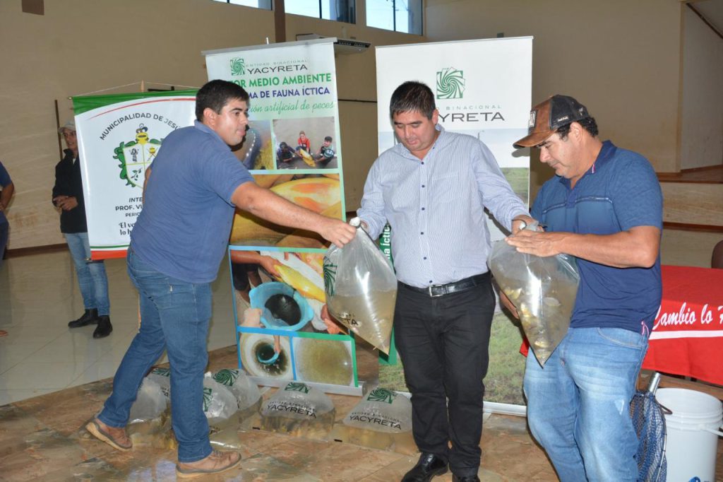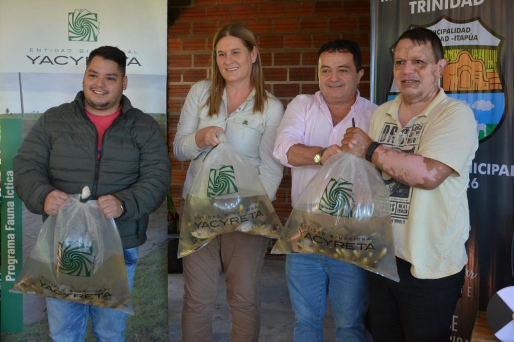 La Entidad Binacional Yacyretá (EBY) prosigue con el programa de apoyo a la acuicultura en el departamento de Itapúa, entregando alevines de pacú a los pequeños productores.