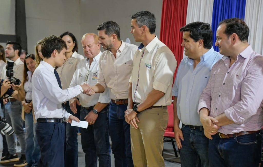 En una jornada trascendental para el departamento de Itapúa, la Entidad Binacional Yacyretá (EBY) realizó una masiva entrega de títulos de propiedad, desembolsos educativos, aportes productivos y equipamiento social. El acto central fue encabezado por el presidente de la República, Santiago Peña, junto al vicepresidente Pedro Alliana y el director ejecutivo de la EBY, Lic. Luis Benítez, con la participación de gobernadores, intendentes y autoridades nacionales.
