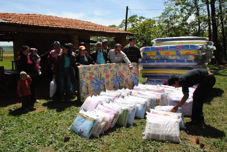 La Entidad Binacional Yacyretá (EBY) procedió a la entrega de colchones y edredones a las familias que viven en el asentamiento “Monseñor Ramón Bogarín”, distante a unos 15 kilómetros del centro de San Ignacio, en el departamento de Misiones.