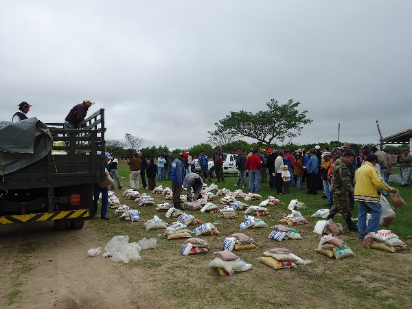 “La sequia fue en enero pasado, pero aún se sienten sus efectos en el campo y por eso estamos entregando estos víveres, estos se van a entregar tres veces, así como establece el decreto”, expresó Pablino Cáceres, coordinador Social de la EBY, quien acompañó la entrega en el departamento de Ñeembucú.