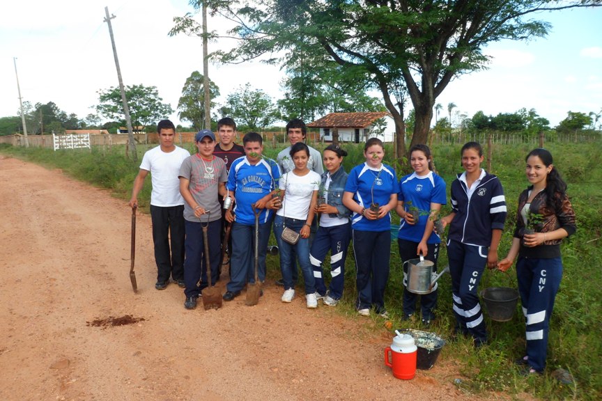 Los jóvenes del tercer curso del Colegio Nacional de “Ysypo”, del distrito de San Miguel, Misiones, iniciaron el cultivo de las primeras plantas en los alrededores del colegio y el centro de la compañía.