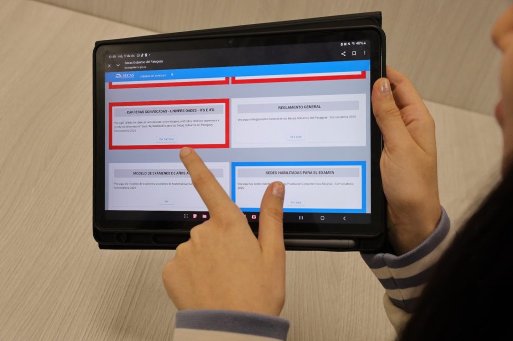 La etapa de postulación para la Convocatoria 2026 del Programa de Becas Gobierno del Paraguay será hasta las 23:59 del lunes 5 de enero próximo, por lo que se insta a los jóvenes a completar el formulario online y cumplir de esta forma con este primer requisito del proceso.