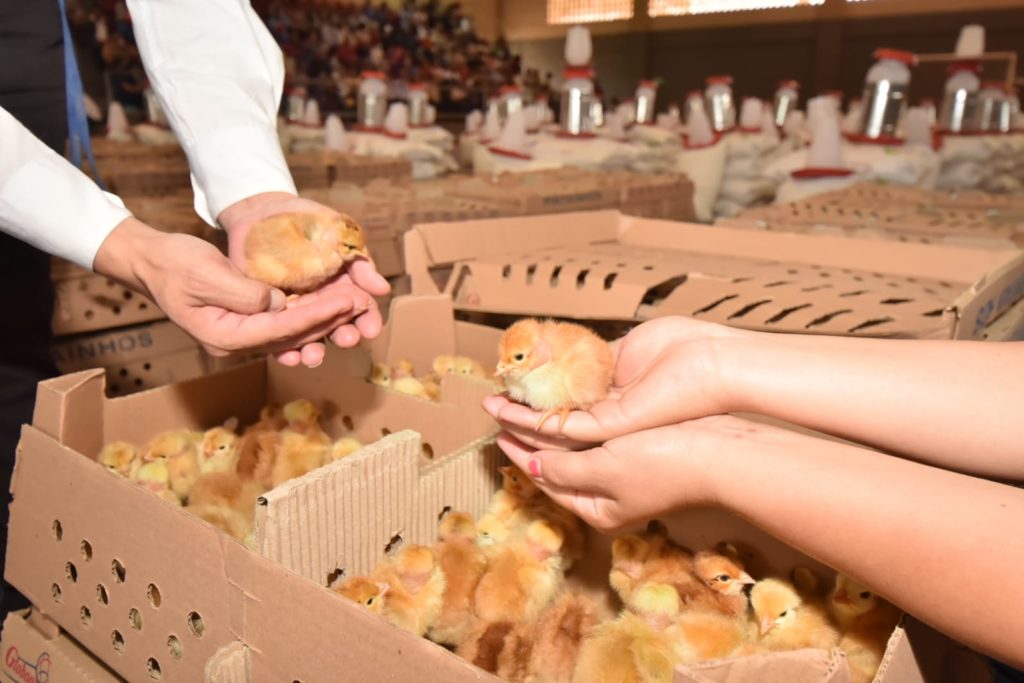 Familias de diferentes localidades de Caazapá recibieron insumos para desarrollar el proyecto cría de aves, uno de los componentes del Programa de Seguridad Alimentaria, que lleva adelante el Gobierno Nacional a través de la Entidad Binacional Yacyretá (EBY), en el sexto departamento.