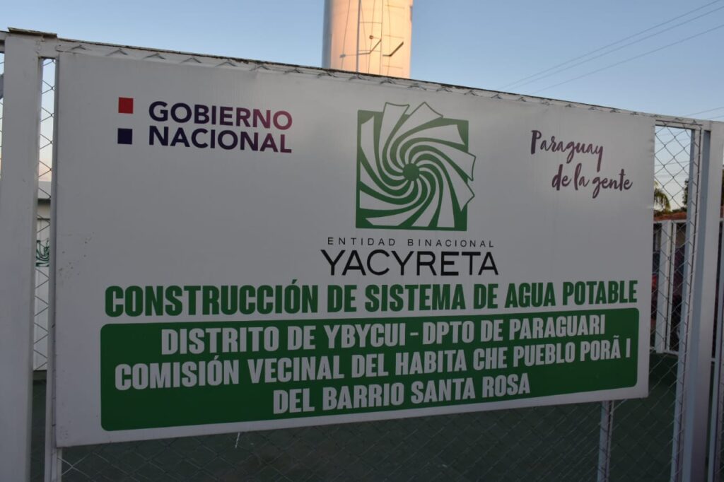 El barrio Santa Rosa, del distrito de Ybycuí también cuenta con un nuevo sistema de provisión de agua potable. El proyecto fue encarado por la Comisión Vecinal Hábitat Che Pueblo Porá I, y fue financiado con fondos de la Entidad Binacional Yacyretá.