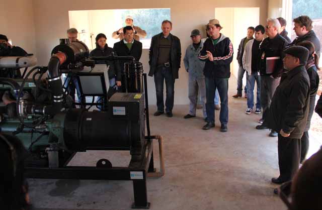 Foto: Pedro Coller, técnico rural del Municipio de Marechal , explicando los beneficios que produce el motor: hace que el gas se convierta en energía eléctrica.