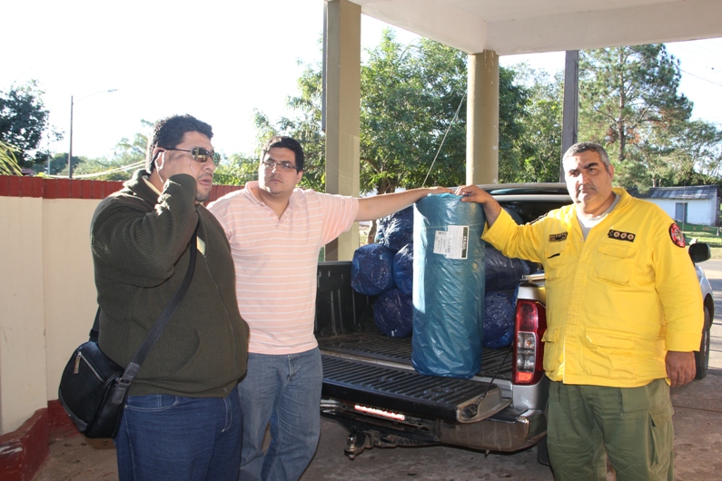 Del acto de entrega participaron el asesor de Comunicación Social de la EBY, Cristian Vázquez; el delegado de Relaciones Públicas en Ayolas, Rolando Rolandi; y el Capitán José Ramón Mutti, coordinador general del Centro de Operaciones de Emergencia.
