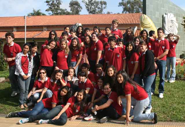Foto: Estudiantes del colegio Johannes Gutenberg, de Lambaré, posan frente a la sede de la oficina de Relaciones Púbicas de la EBY, en Ayolas.