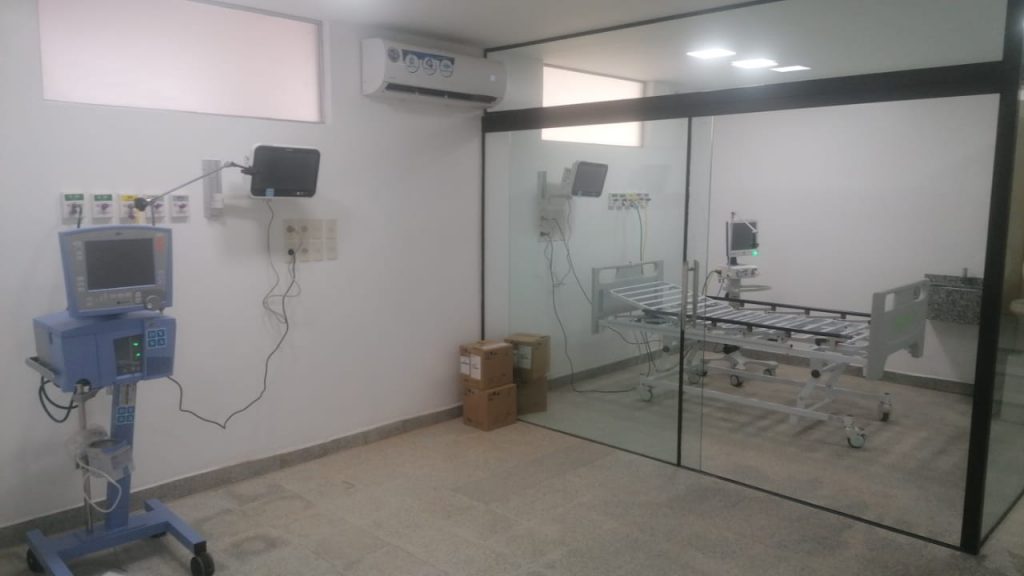 Esta área fue adecuada con 3 nuevas camas con todos los equipamientos para cuidados intensivos y otra destinada para sala de aislamiento.