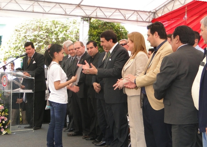 El presidente de la República, Federico Franco, y el director de la Entidad Binacional Yacyretá (EBY), Lic. Enrique Cáceres Rojas, prosiguieron con los actos en el departamento de Misiones. En la ciudad de Santa Rosa unos 551 jóvenes recibieron becas universitarias y numerosas organizaciones sociales e instituciones fueron beneficiadas con aportes institucionales de la binacional por valor de 5.169.287.860 de guaraníes.