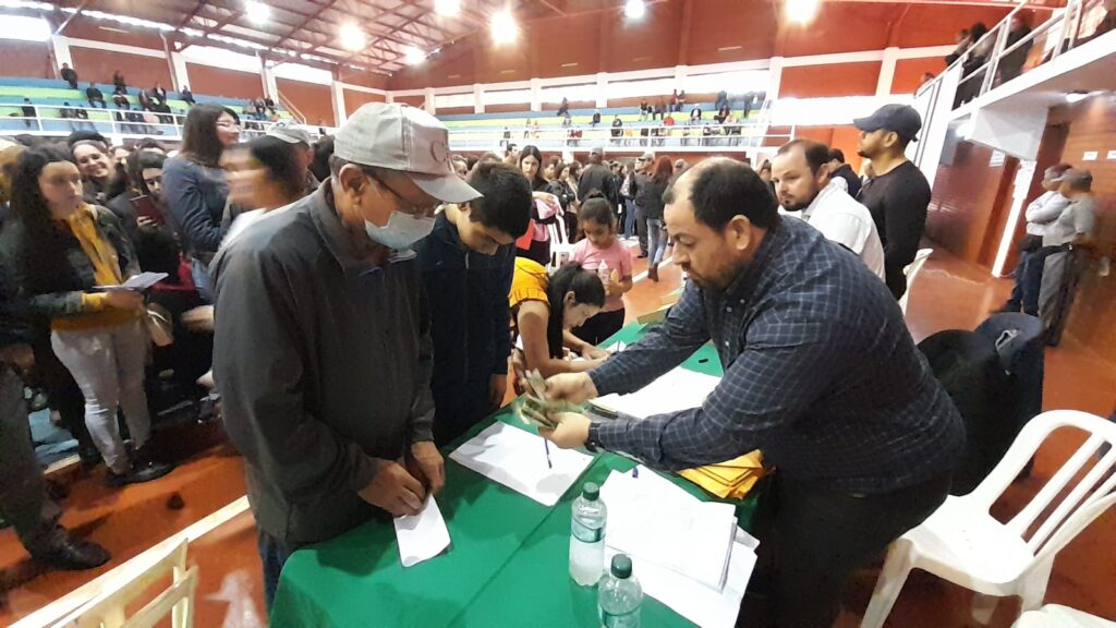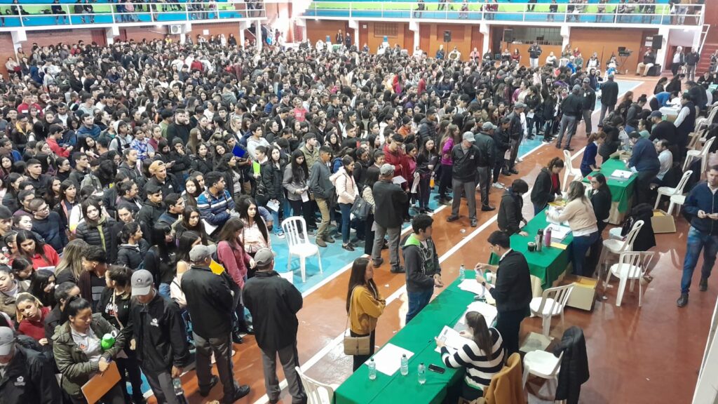 Un total de 1.600 jóvenes de Itapúa reciben el primer desembolso por becas universitarias otorgadas por el Gobierno Nacional, a través de la Entidad Binacional Yacyretá (EBY). El acto se desarrolla en el Polideportivo Municipal del distrito de Capitán Miranda.