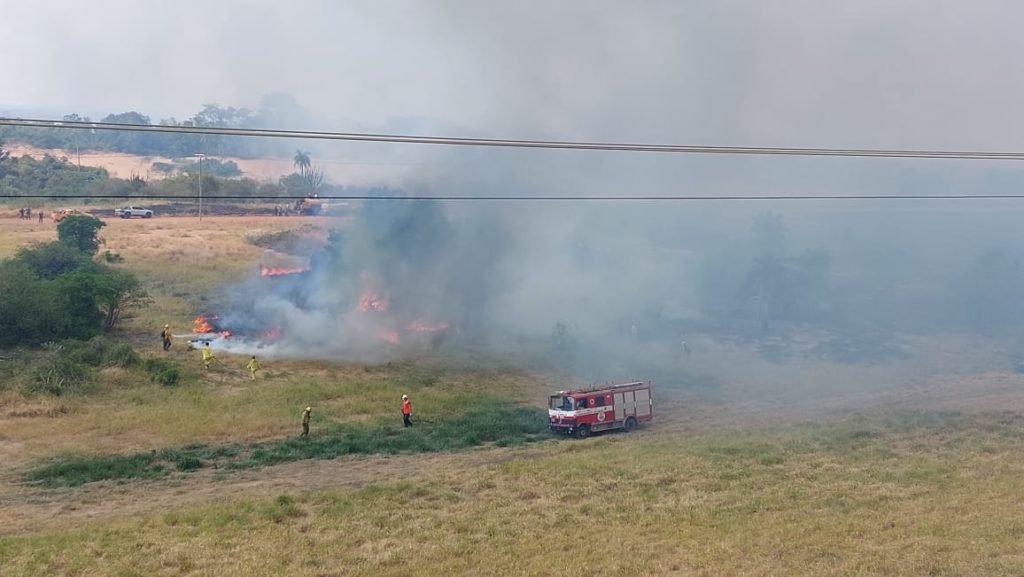 Hoy a las 13:00 horas aproximadamente se dieron algunos focos de incendio a 5 km de la zona de obras de Aña Cuá y a 22 km de la Central Hidroeléctrica Yacyretá.