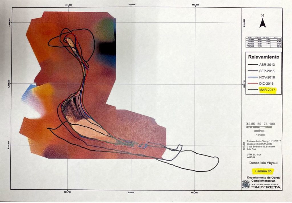 La Entidad Binacional Yacyretá (EBY) ha efectuado un seguimiento y relevamiento permanente de las Dunas de San Cosme y Damián, con apoyos topográficos e inspecciones periódicas.