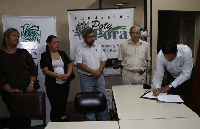 La Fundación Poty Porá recibe los insumos mencionados comprometiéndose a destinar los mismos al laboratorio Forense de la Policía Nacional para uso en forma única y exclusiva a los fines de la institución.