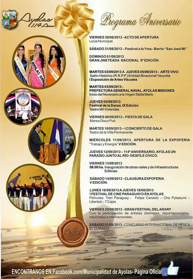 Las actividades por el aniversario iniciaron oficialmente el pasado sábado, 31 de agosto, con el Festival a lo Yma en el Barrio San Josemí, siguiendo el domingo, 1 de setiembre, con la Gran Jineteada Nacional en su novena edición en el Predio de la Asociación de Jinetes – Yacyretá.