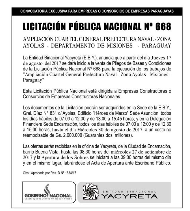Licitación Pública Nacional N° 668 / Ampliación de Cuartel General de Prefectura Naval