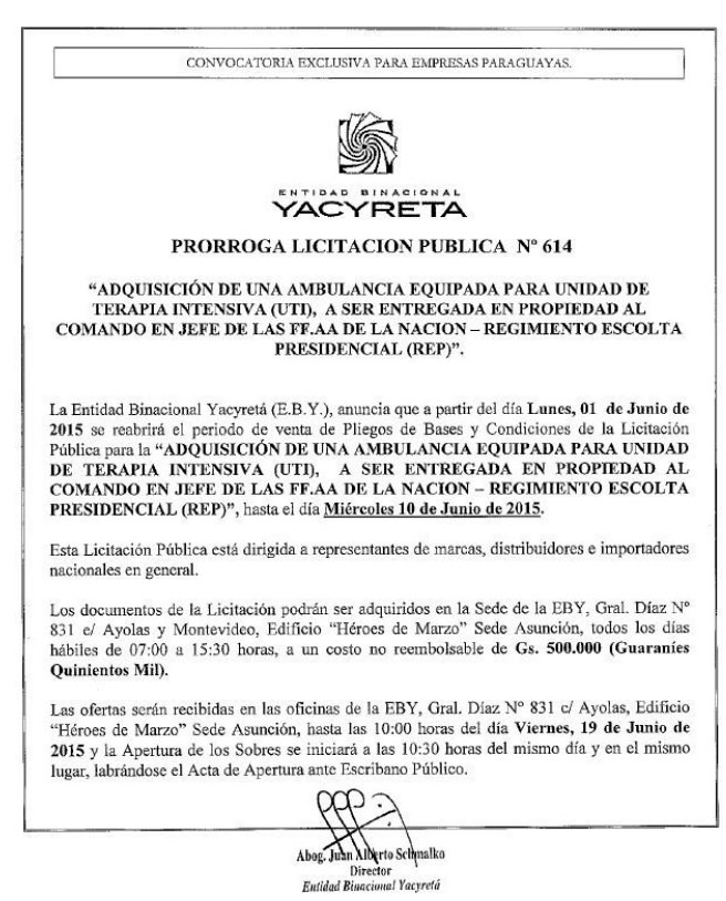 Licitación Pública Nacional Nº 614 (Prórroga)