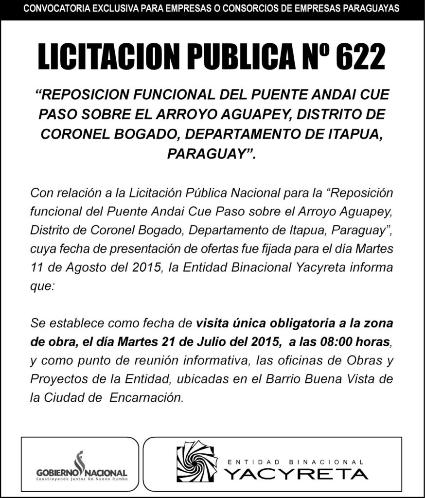 Licitación Pública Nacional Nº 622 (Aclaratoria)