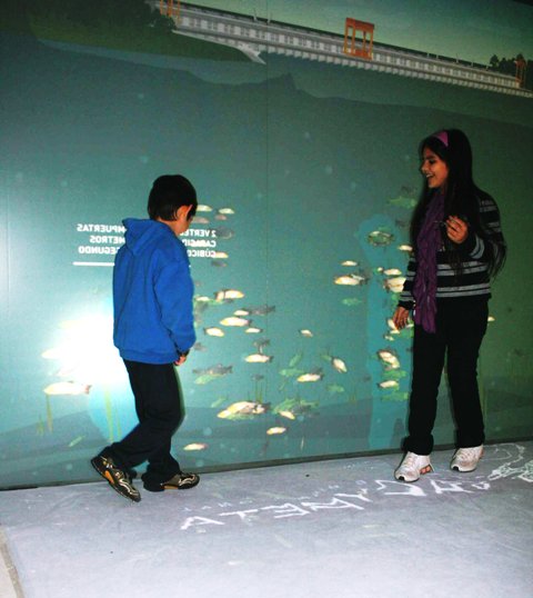 La incorporación de tecnología de punta permite a los visitantes sentir la experiencia a través de dos pantallas; una en el piso y otra en el muro que permiten un recorrido virtual por la estructura de la represa, y el cuidado de la fauna íctica con el sólo movimiento de las manos y el cuerpo.