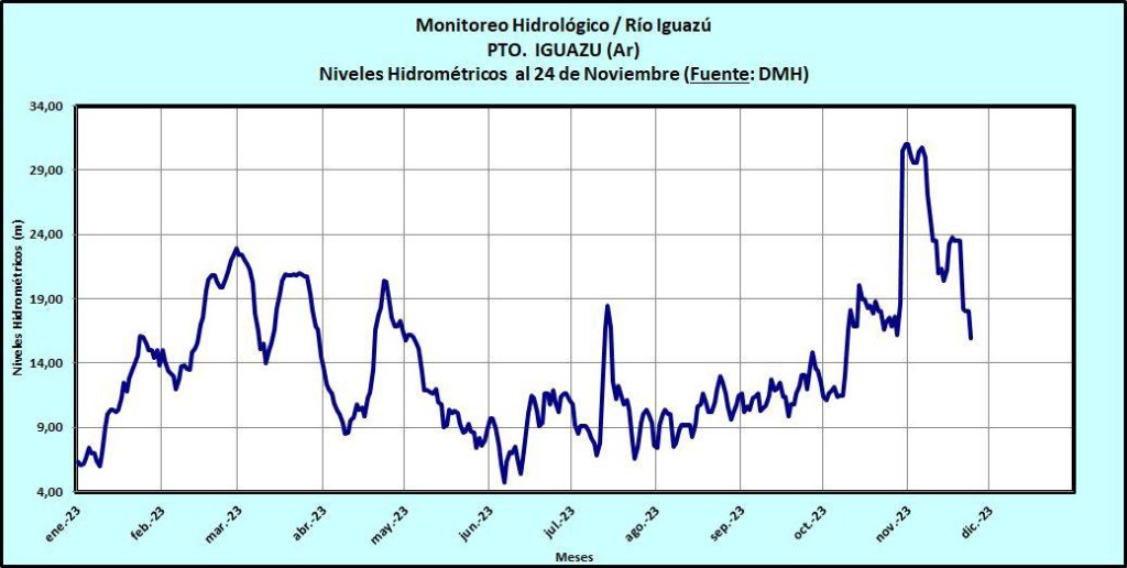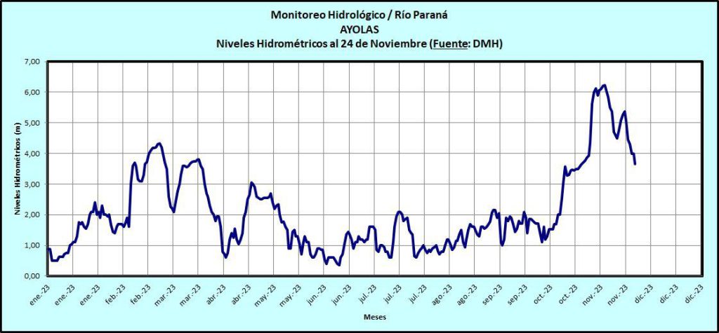 Niveles de los ríos Iguazú, Paraná y Paraguay – 22-11-2023
