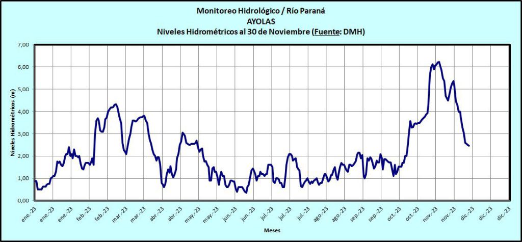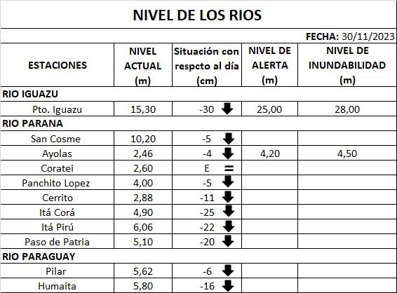 Niveles de los ríos Iguazú, Paraná y Paraguay – 30-11-2023